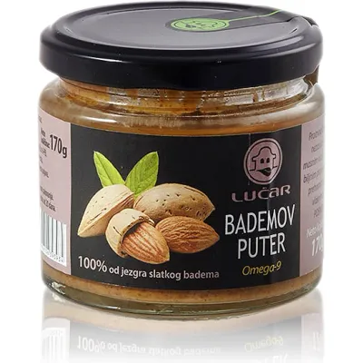 Bademov puter - složeni (mešani) masni namaz dobijen usitnjavanjem veoma blago termički obrađenog jezgra slatkog badema. Bez dodatog šećera, veštačkih dodatka i aroma.