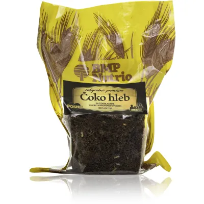 Integralni premijum čoko hleb sa čokoladom, suvim i kandiranim voćem, bez aditiva, bez konzervansa. Posno.