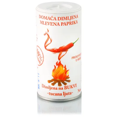 Crvena tucana dimljena mlevena paprika se dobija dimljenjem prirodnim putem na bukovom drvetu. Ne sadrži dodatne arome.