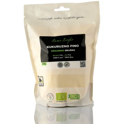 Organsko brašno od kukuruza (iz vlastitog ekološkog uzgoja)Sadržaj/količina vode: do 15 %, stepen kiselosti: do 4.0Prirodno bez glutena.
