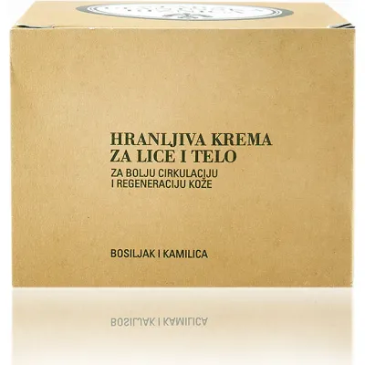 Hranljiva krema za lice i telo iz kolekcije Stara Planinska Riznica je jedna od najhranljivijih krema na našem tržištu. Kombinacija aktivnih sastojaka i ekstrakata bosiljka i kamilice pospešuje cirkulaciju kože, održava njen prirodni nivo vlažnosti i štiti je od iritacije. Kožu čini glatkom i sjajnom i usporava proces starenja.