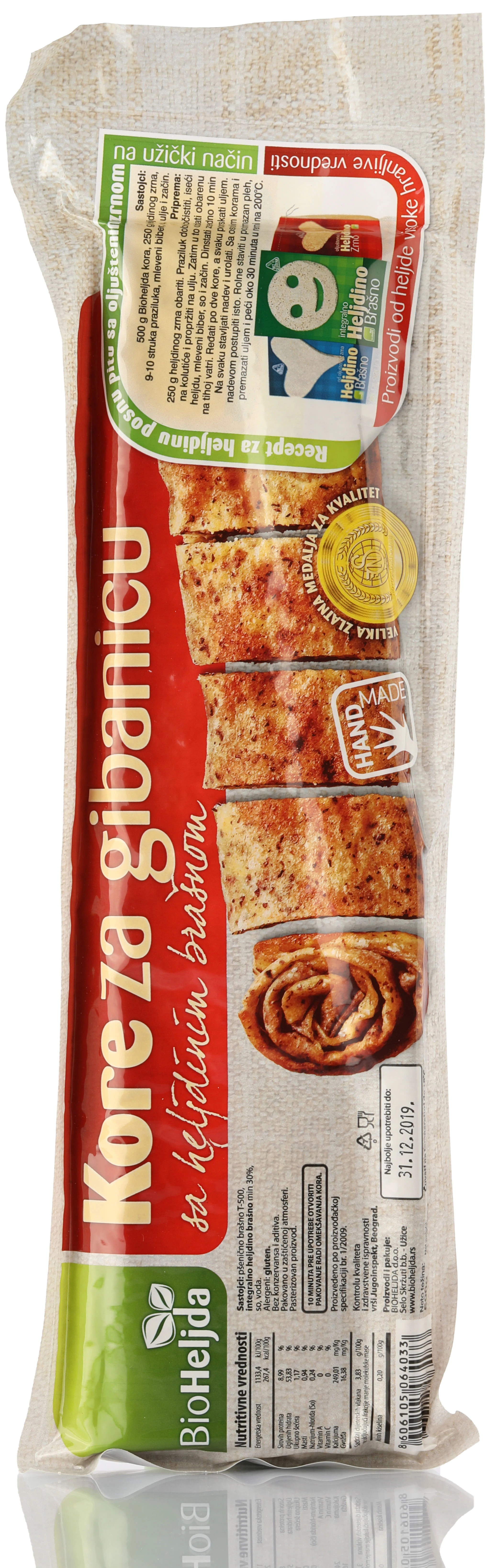Kore za gibanicu sa heljdinim brašnom su proizvod dobijen tradicionalnim načinom proizvodnje, što im daje poseban ukus i kvalitet za lako upijanje nadeva. Osim gibanice, moguće je praviti i druge pite sa željenim nadevima. Pakovanja su od 500 g a kore su zaštićene, što ih čini polutrajnim proizvodom sa rokom upotrebe do šest meseci na +8⁰C.