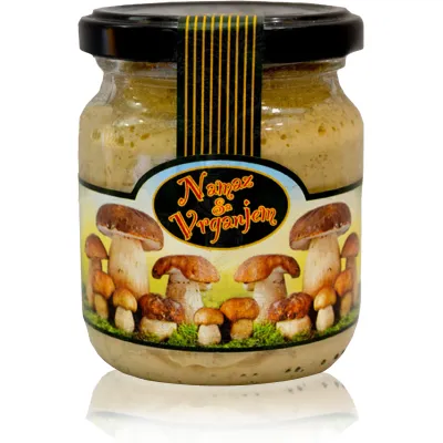 Proso 13%, voda, hladno ceđeno suncokretovo ulje 20%, sušeni vrganj 2%, himalajska so, začini, emulgator sojiin lecitin, konzervans E 202.Za proizvodnju ove teglice osušeno je 40 g svežih vrganja.Alergen info: proizvod sadrži sojin lecitin.