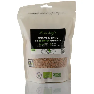 Organsko oljušteno zrno (prapšenice) spelte/pira/krupnika iz vlastitog ekološkog uzgoja.Sadržaj/količina vode do 14.5 %Sadržaj/količina polomljenih zrna do 10 %Sadržaj/količina neoljuštenih zrna do 0.25 %