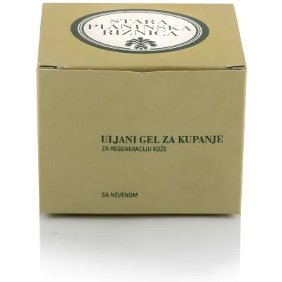 Uljani gel za kupanje iz kolekcije Stara Planinska Riznica je jedinstven proizvod na našem tržištu jer ima višestruko delovanje: izuzetno nežan piling, namenjen svim tipovima kože, otklanja mrtve ćelije sa površine kože, ostavljajući je čistom i glatkom. Aktivno dejstvo ulja nevena poboljšava cirkulaciju i umiruje i regeneriše kožu.