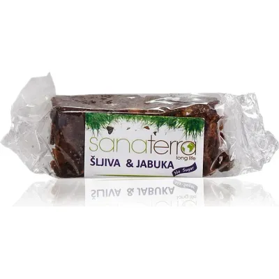 Sanaterra voćne štanglice su napravljene od najukusnijeg voća iz subotičkih voćnjaka. Šljive, višnje, jabuke – voće puno zdravih sastojaka, bez šećera, bez aditiva, bez konzervansa. Idealna užina, ili zdrava energija izmedju obroka, kako za male, tako i za velike.